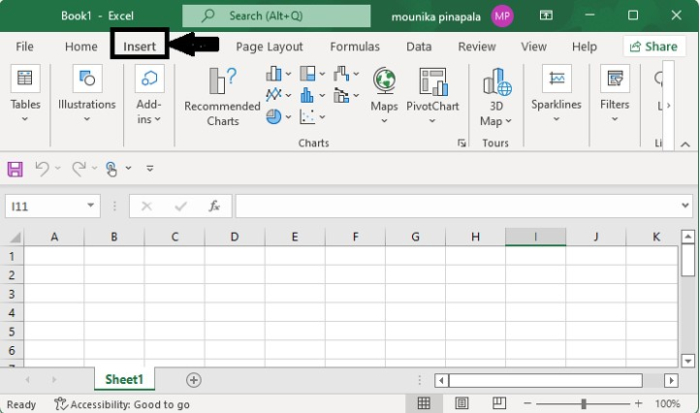 開啟 Excel 表格並選擇“插入”選項卡。