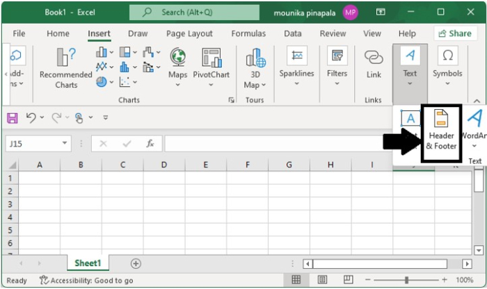 從“插入”選項卡中選擇文字後,選擇“頁首和頁尾”。