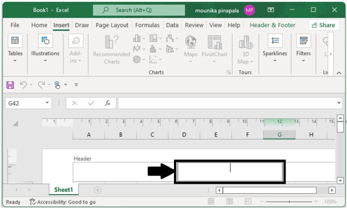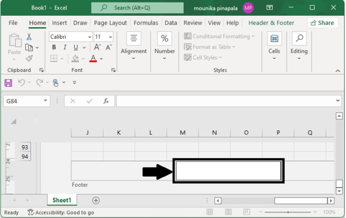 單擊工作表中的任意位置,以關閉頁首或頁尾而不保留您所做的更改,請按Esc鍵。