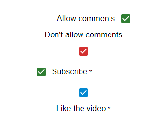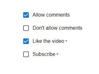 <FormControlLabel required control={<Checkbox />} label="Like the video" />