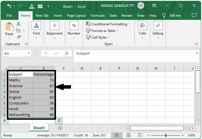 考慮以下 Excel 工作表,其中包含類似於下圖所示的資料。