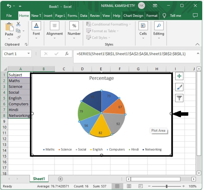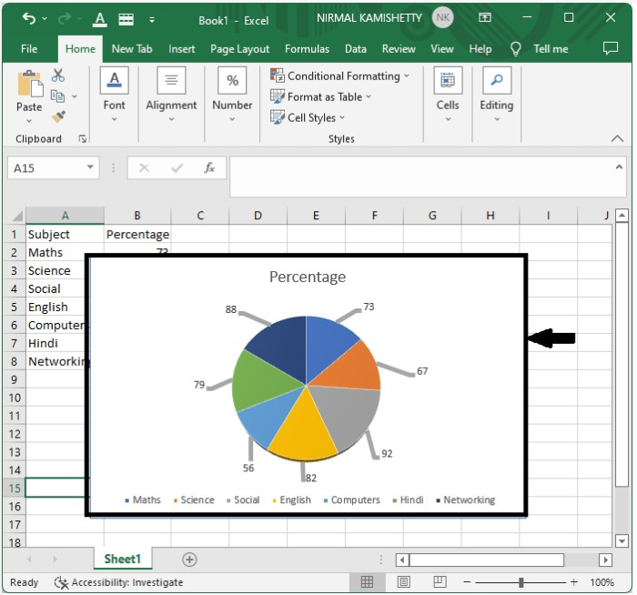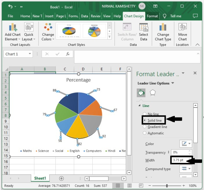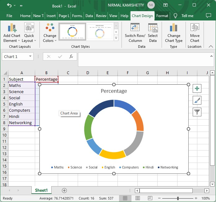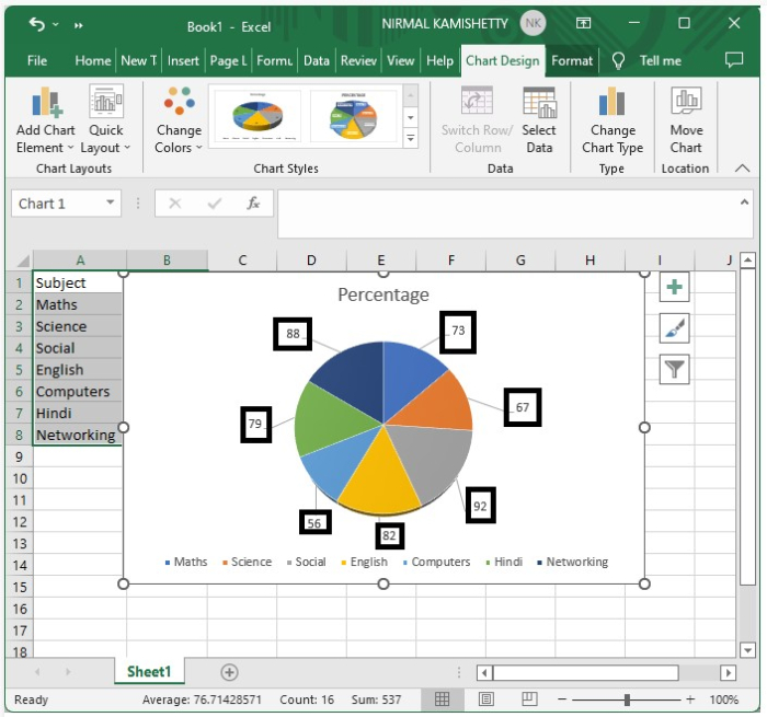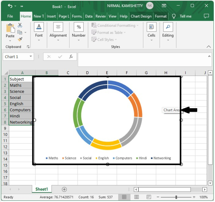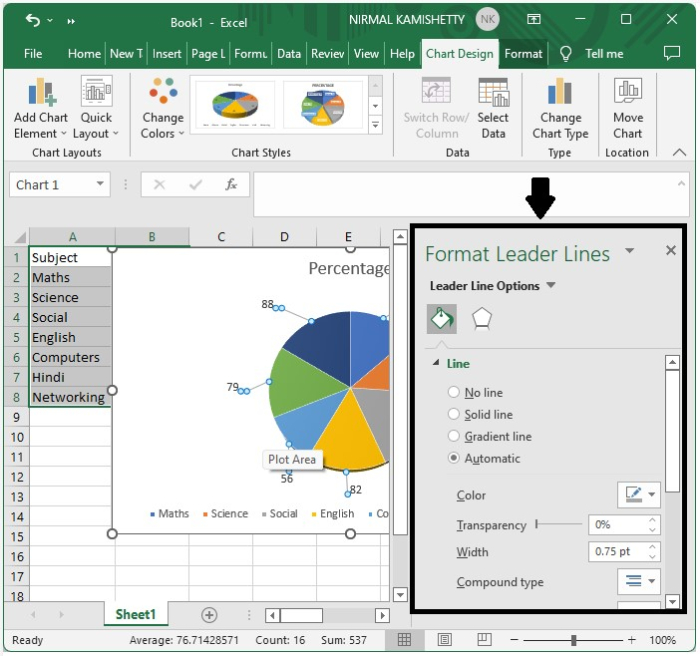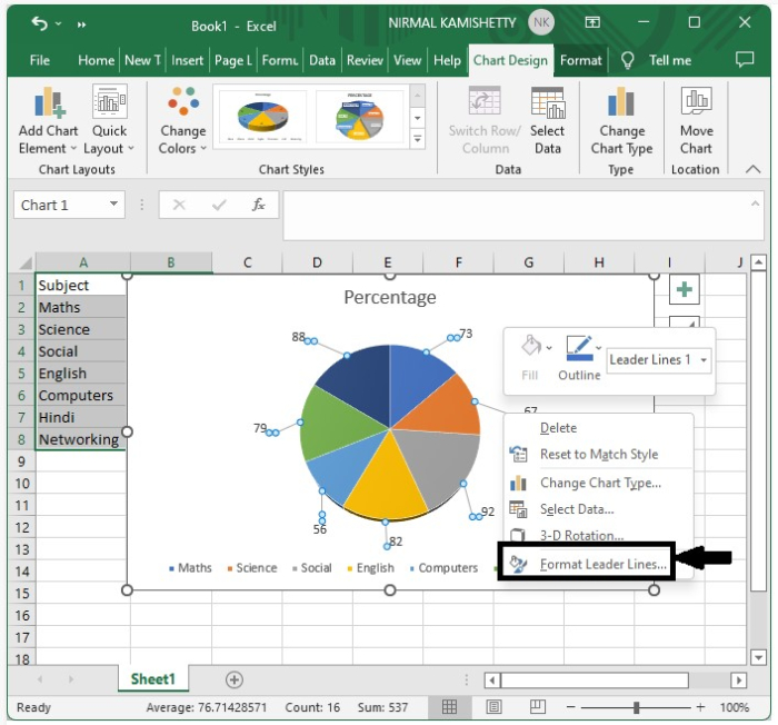 在這裡,我們將首先建立一個環形圖,將其轉換為餅圖,然後最終向其新增資料標籤。讓我們看一下在 Excel 中向環形圖新增引導線的簡單過程。