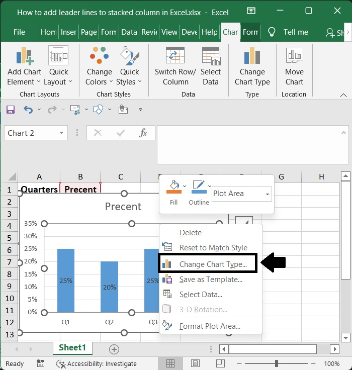 之後,右鍵單擊圖表,從出現的上下文選單中選擇“更改圖表型別…”。