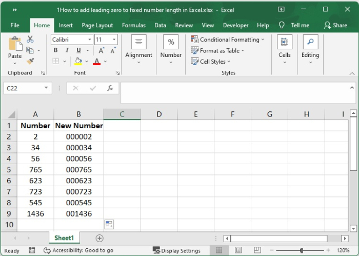 您有一系列字元長度不同的數字,看起來雜亂無章。您可以為任何與下面截圖所示長度相同的固定數字新增前導零,以使顯示更整潔和清晰。