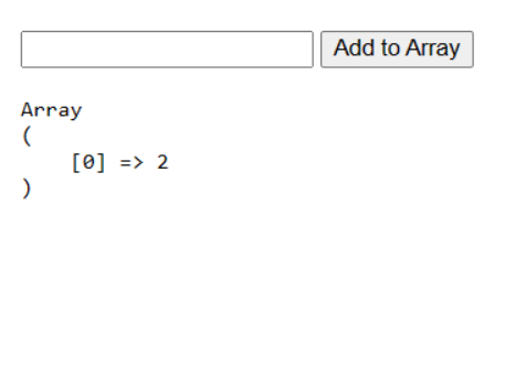<body> <form method="POST"> <input type="text" name="new_value"> <input type="submit" name="submit" value="Add to Array"> </form> </body>