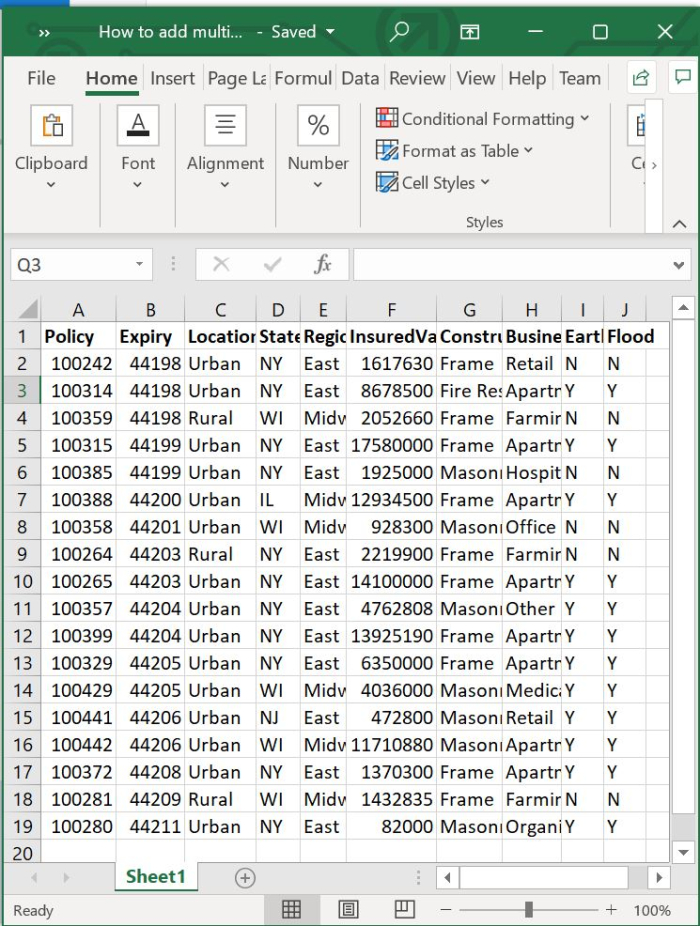 首先,我們必須建立一個示例資料來建立資料透視表,如下面的螢幕截圖所示。