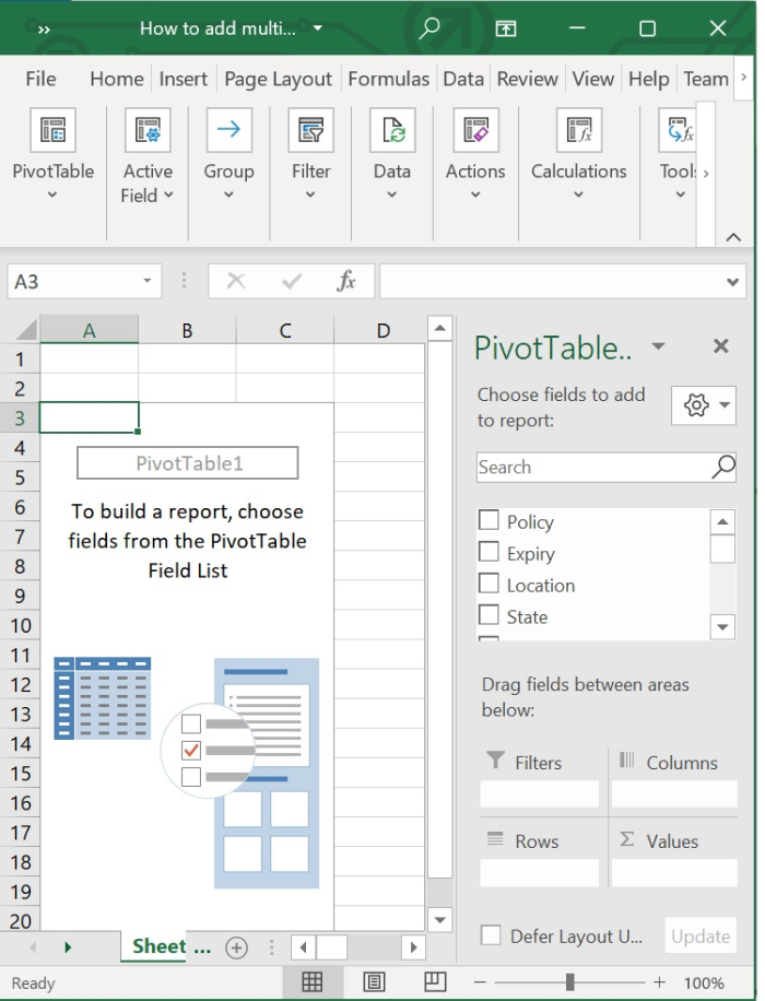 在構建資料透視表時,我們必須手動將每個欄位拖放到“行標籤”或“值”中。如果欄位列表很長,則其餘欄位應新增到“值”框中,但如果我們確實需要,可以輕鬆新增一些行標籤。當我們希望從多個維度和事實來檢視資料透視表時,將多個欄位新增到資料透視表中將非常有用。