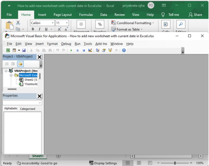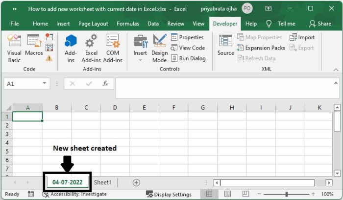 我編寫了應用程式 VBA (Visual Basic for Applications) 程式碼,用於在工作表的末尾新增新的工作表,並將其標籤命名為“當前日期”。