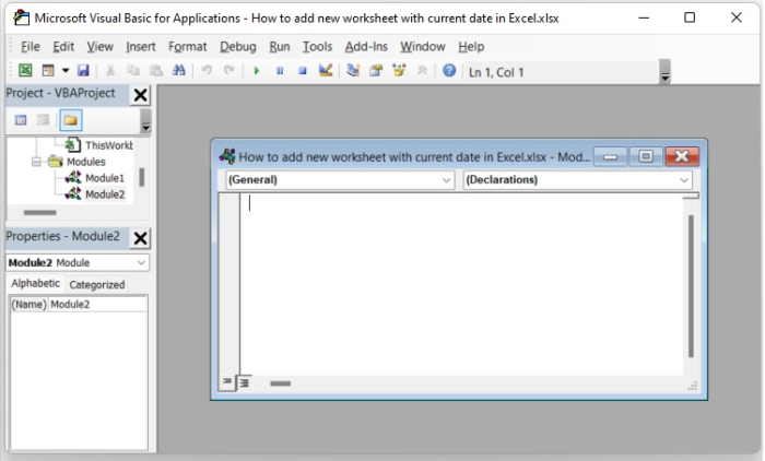 要訪問 VBA 編輯器,請轉到“插入”選單並選擇“模組”。
