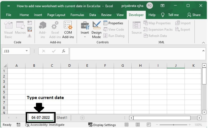 例如,您可以將此工作表從“Sheet1”重新命名為“當前日期”。