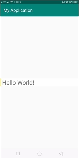<?xml version = "1.0" encoding = "utf-8"?> <android.support.constraint.ConstraintLayout xmlns:android = "http://schemas.android.com/apk/res/android" xmlns:app = "http://schemas.android.com/apk/res-auto" xmlns:tools = "http://schemas.android.com/tools" android:layout_width = "match_parent" android:layout_height = "match_parent" tools:context = ".MainActivity"> <LinearLayout android:layout_width = "match_parent" android:layout_height = "wrap_content" android:background = "@drawable/text_style" app:layout_constraintBottom_toBottomOf = "parent" app:layout_constraintLeft_toLeftOf = "parent" app:layout_constraintRight_toRightOf = "parent" app:layout_constraintTop_toTopOf = "parent"> <TextView android:layout_width = "match_parent" android:layout_height = "wrap_content" android:layout_marginLeft = "10dp" android:text = "Hello World!" android:textSize = "30sp" /> </LinearLayout> </android.support.constraint.ConstraintLayout>