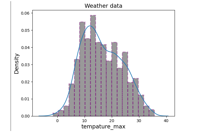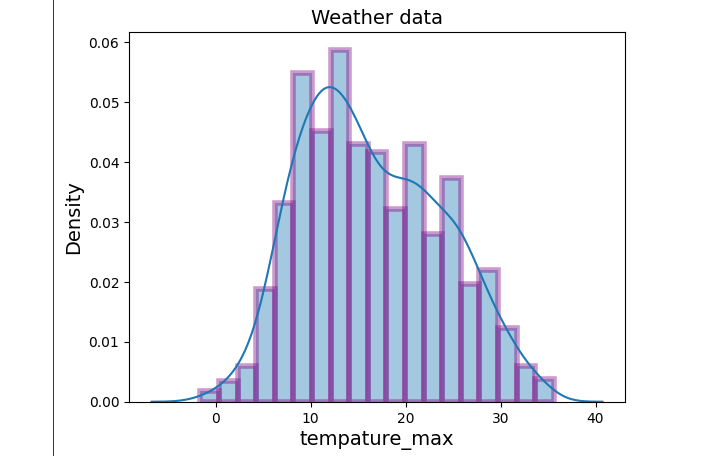 直方圖用於顯示一個或多個數值變數的分佈情況。Seaborn 幫助我們繪製直方圖條形和密度曲線,其繪製方式與 kdeplots 相同。準確地說,直方圖是圖形工具,用於顯示一組連續資料的分佈情況。