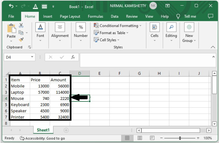 假設 Excel 表格中資料的表示方式類似於下面給出的螢幕截圖: