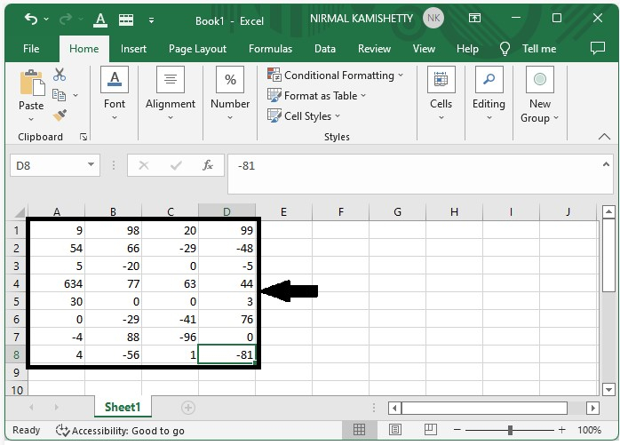 假設我們有一個 Excel 表格,其中包含正數、負數甚至零的數字列表。