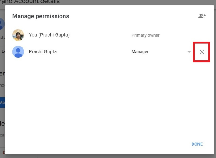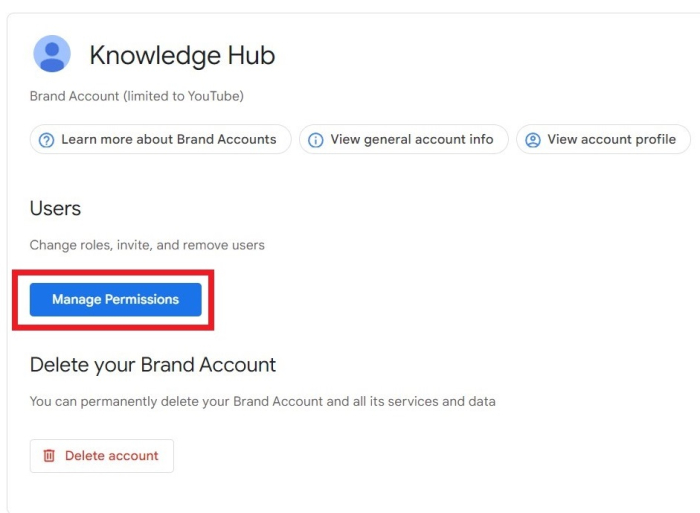 如果您是品牌帳戶的主要所有者,則可以管理頻道的整個許可權狀態,還可以更改頻道上其他管理員的許可權。