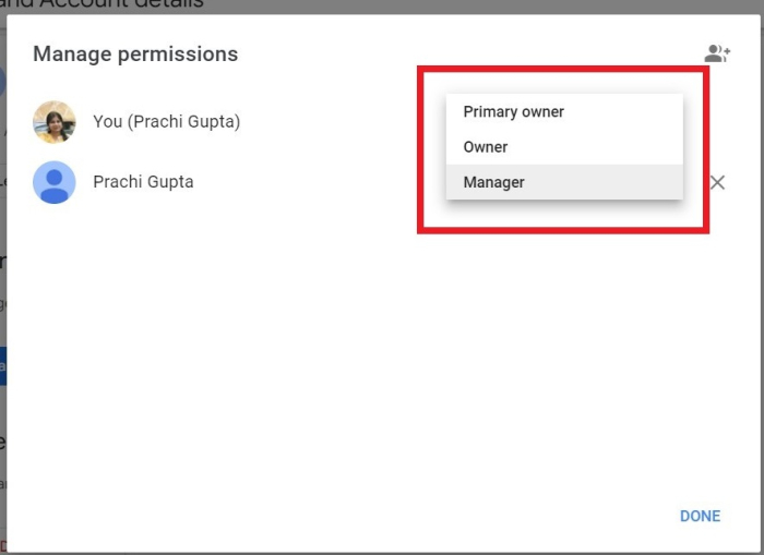 受邀者接受邀請後,其姓名將顯示在下方。您之後也可以編輯管理員的角色。您可以透過點選其當前角色來更新授予管理員的訪問許可權。如下所示。點選管理員後面的倒三角形,您將獲得許多選項。點選更改許可權並儲存。