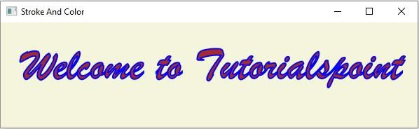 由於 JavaFX 中的 **javafx.scene.text.Text** 類繼承自 Shape 類,因而它繼承了該類的所有成員。你可以透過為 Text 類繼承的描邊、描邊寬度和填充屬性設定值,來修改文字節點的描邊和顏色。