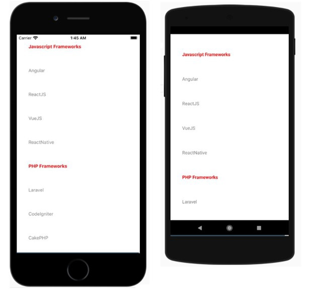 <View style={styles.container}></View>下面是一個使用樣式表顯示 FlatList 元件的示例 −