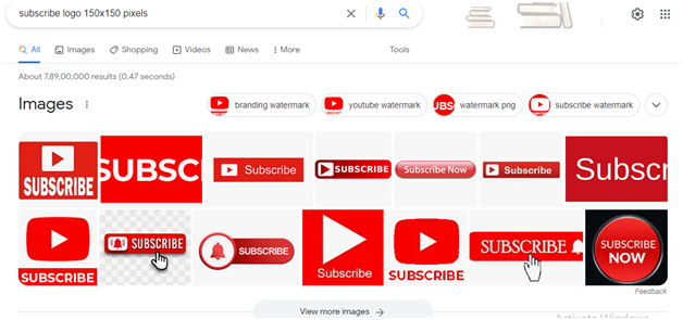 - 步驟8 − 您可以建立自己的訂閱影像,也可以從 Google 圖片下載。訪問Google.com 網站並輸入150*150 畫素的訂閱影像(如下圖所示)。