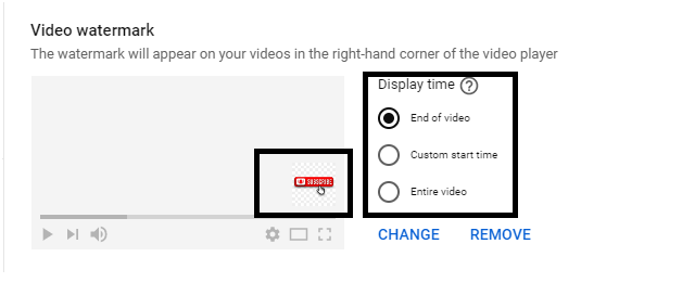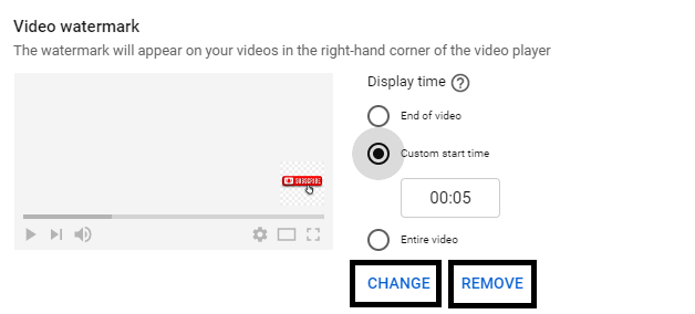 - 步驟13 − 訂閱按鈕將顯示在您上傳到 YouTube 的所有影片上。您甚至可以選擇影片水印影像的顯示時間(如下圖所示)。