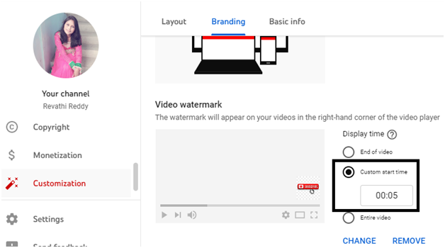 - 步驟5 − 在品牌頁面中,您會發現不同的部分 – 個人資料圖片、橫幅圖片和影片水印(向下滾動以檢視影片水印部分)。在這裡您可以上傳訂閱按鈕。