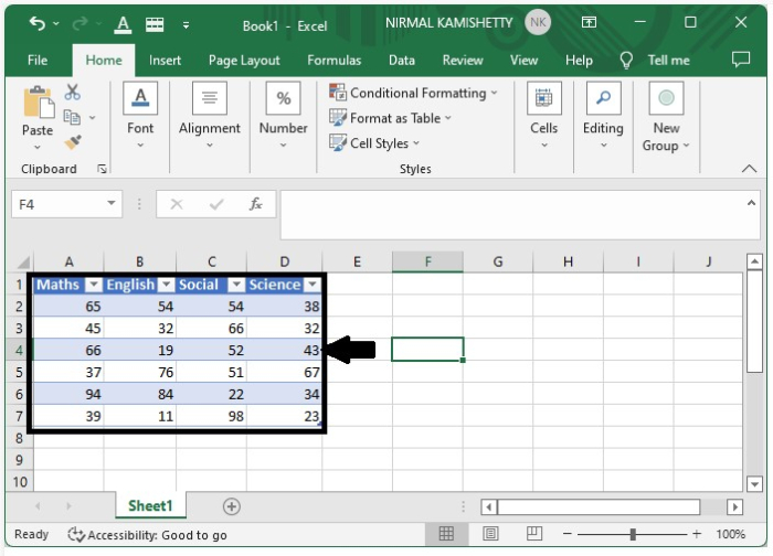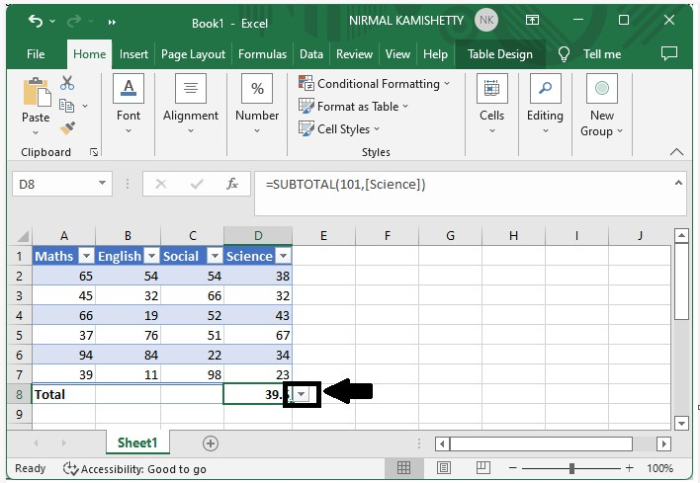 在這裡,我們將表格轉換為區域,然後新增小計行。讓我們來看一個在 Excel 表格中新增小計行的簡單步驟。