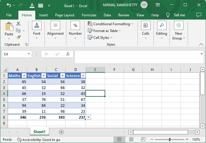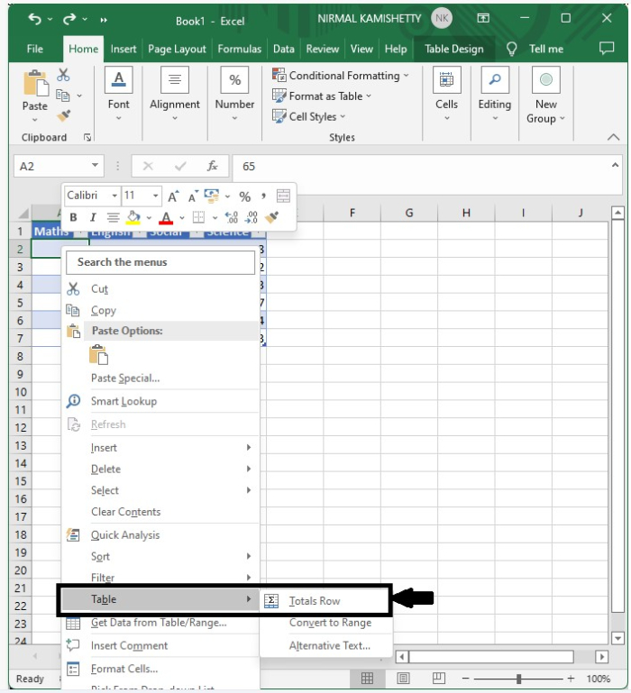 在這裡,我們將使用右鍵選單新增總計行。讓我們來看一個簡單的過程,瞭解如何在 Excel 表格中新增總計行。