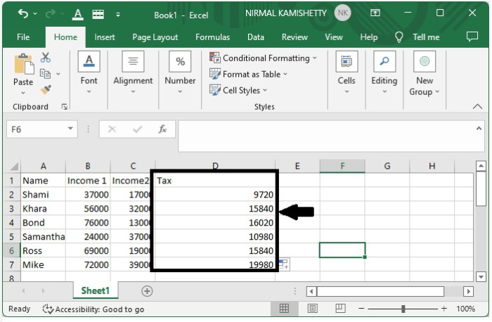讓我們假設一種情況,我們想要計算您需要為您的總收入支付的稅款。這個問題有兩個步驟,首先我們透過將來自所有收入來源的收入加總來計算您的總收入,第二步是將其乘以您想要支付的稅款百分比。我們可以藉助以下資訊在一個計算中解決整個問題。這裡我們首先將兩個數字相加,然後使用一個公式進行乘法。