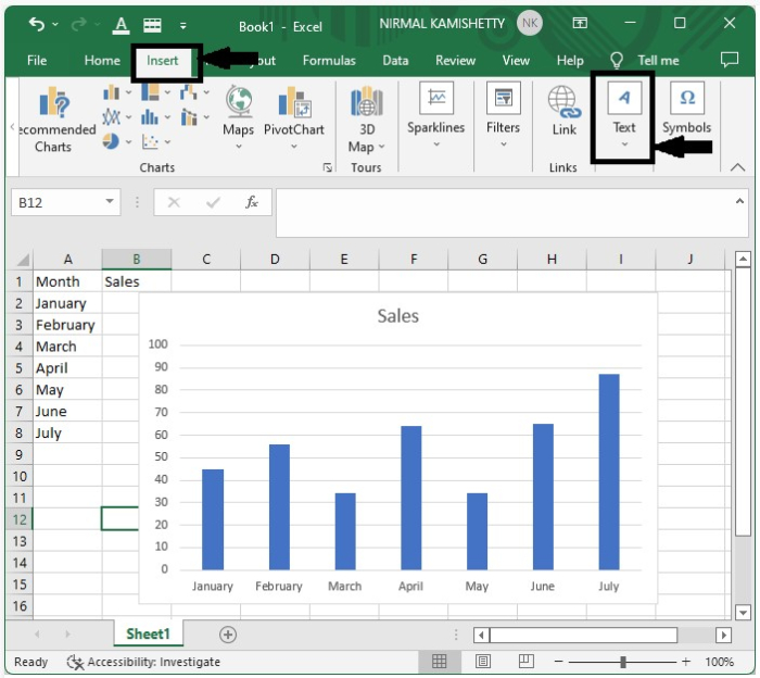 這將建立一個文字框,我們可以透過將框精確地移動到圖表上方將其放置在圖表條形的正上方。
