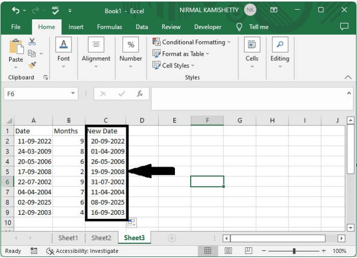 為了完成我們的任務,我們首先將使用 EDATE 公式獲得一個值,然後將其轉換為日期。讓我們看看在 Google Sheet 中向日期新增月數的簡單步驟。