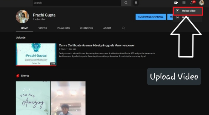 開啟您的 YouTube 頻道帳戶。點選位於視窗右上角的符號