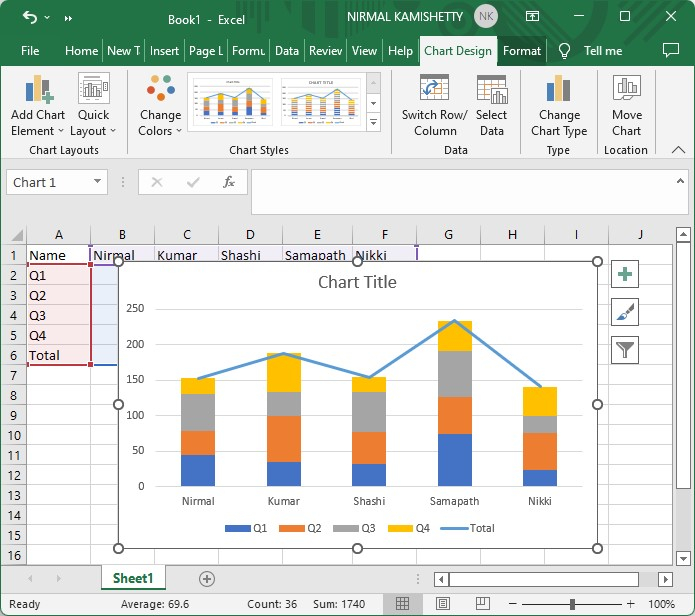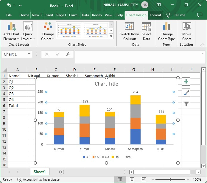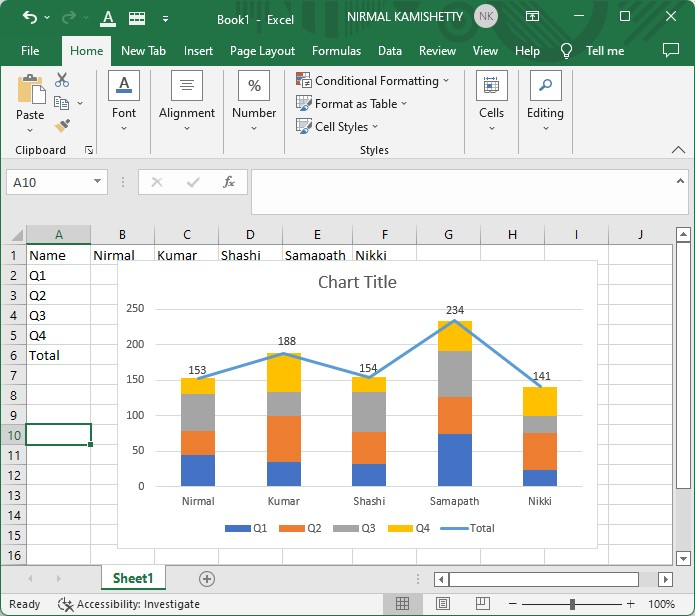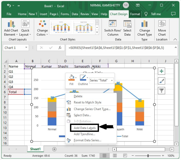 這裡我們將首先建立堆疊柱狀圖,然後更改其格式,最後從右鍵單擊選單中新增資料標籤。讓我們來看一下在Excel中向堆疊柱狀圖新增總計標籤的簡單步驟。