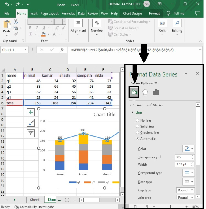 要再次刪除折線圖,請右鍵單擊任何條形,然後選擇“設定資料系列格式”以獲取格式選單。