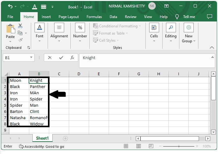 我們可以看到,直接從Excel貼上的資料看起來很混亂,難以理解,因此我們可以使用Excel中的尾隨空格使其看起來整潔。