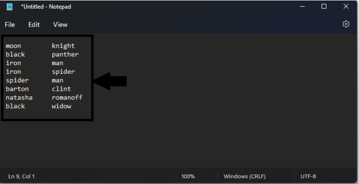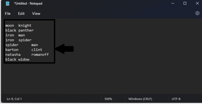 即使我們看不到兩組資料之間的任何區別,當我們將資料複製到記事本時,我們可以看到巨大的差異。