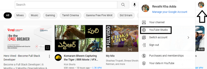 - 步驟 1 - 前往 YouTube.com 網站。登入你的 YouTube 帳戶。在右側上角,你會找到一個個人資料圖示。點選個人資料圖示。將出現一個下拉選單。在下拉選單中,你會找到YouTube Studio。點選YouTube Studio。