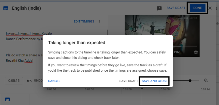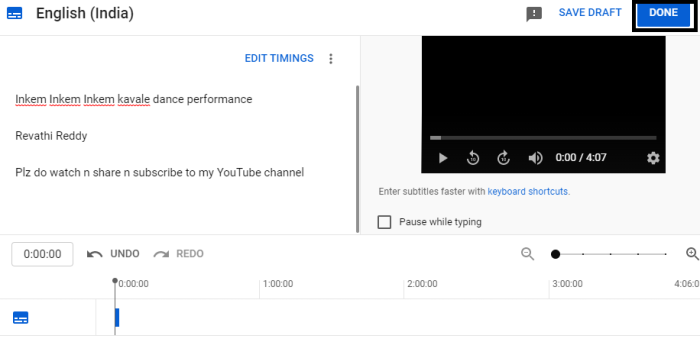 - 步驟 14 - 點選完成按鈕後,新增的字幕將儲存到影片中。當你在 YouTube 上播放影片時,你會看到字幕(如下所示)。