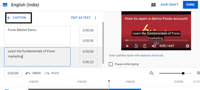 - 步驟 12 - 將開啟一個單獨的字幕視窗,你可以在框中鍵入文字並編輯時間。要新增更多框,你需要點選+字幕按鈕。