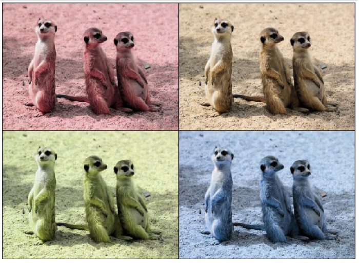 在此程式中,我們使用 **hue_factor=-0.1** 調整輸入影像的色調。