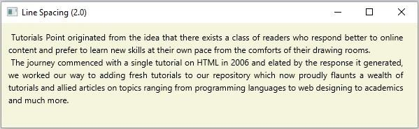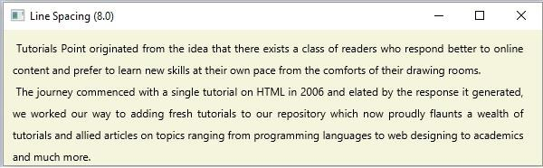 javafx.scene.text.Text類的行間距屬性指定文字(節點)各行之間的行間距(垂直)。