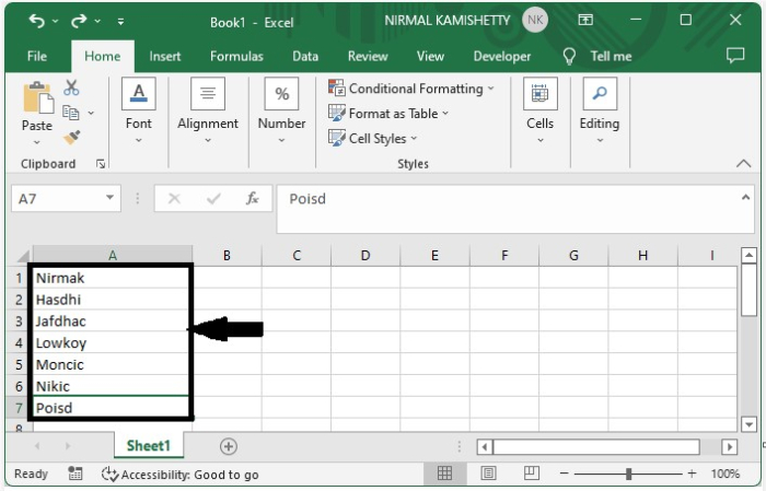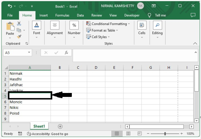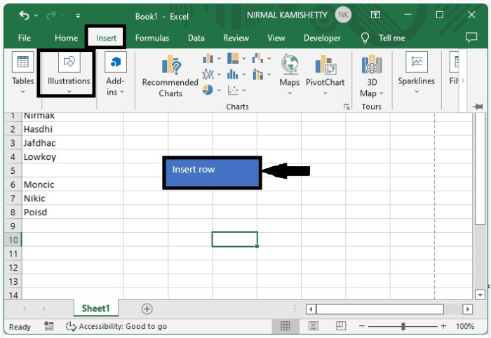現在,當我們嘗試直接插入行時,行始終會在選定單元格的上方插入。