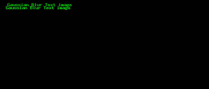 <?php $image = imagecreatetruecolor(700, 300); // Writes the text and apply a gaussian blur on the image imagestring($image, 50, 25, 8, 'Gaussian Blur Text image', 0x00ff00); $gaussian = array( array(1.0, 2.0, 1.0), array(2.0, 4.0, 2.0), array(1.0, 2.0, 1.0) ); imageconvolution($image, $gaussian, 16, 0); // Rewrites the text for comparison imagestring($image, 15, 20, 18, 'Gaussian Blur Text image', 0x00ff00); header('Content-Type: image/png'); imagepng($image, null, 9); ?>