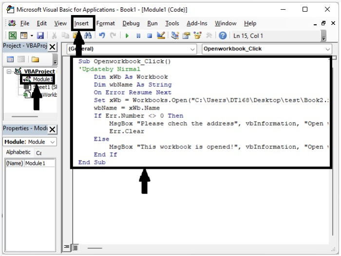 Set xWb = Workbooks.Open("C:\Users\DT168\Desktop\test\Book2.xlsx")