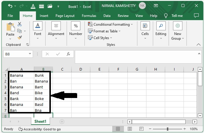 假設我們有一個Excel電子表格,其中資料類似於下面螢幕截圖中顯示的資料。