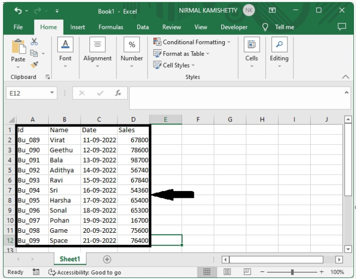 考慮一個Excel表格,其中包含類似於下圖所示的資料。