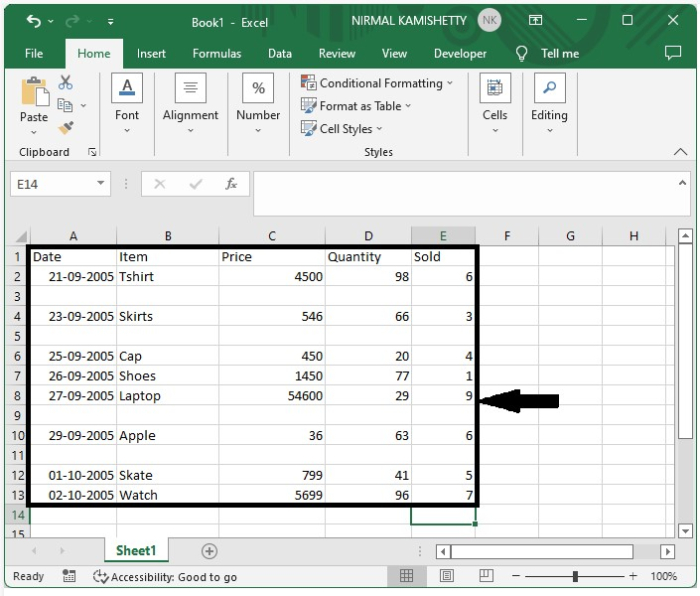 讓我們考慮一個 Excel 工作表,其中工作表中的資料類似於下圖中的資料。