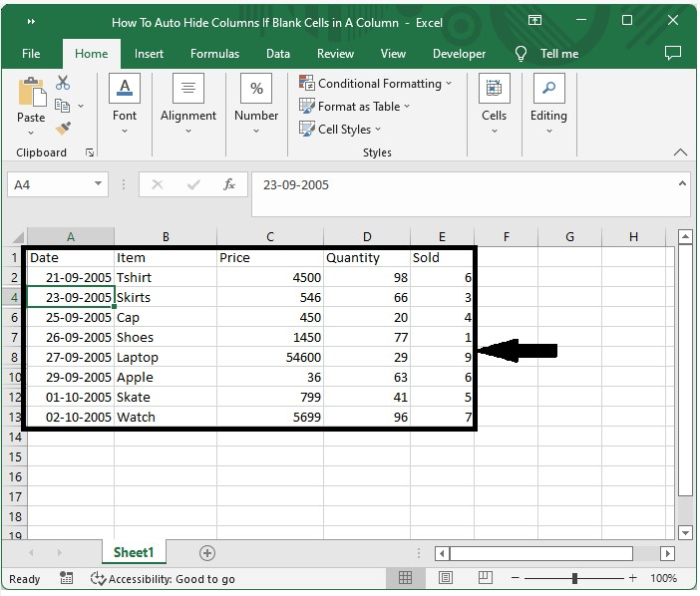 閱讀本教程,瞭解如何在列中包含空白單元格時自動隱藏列。