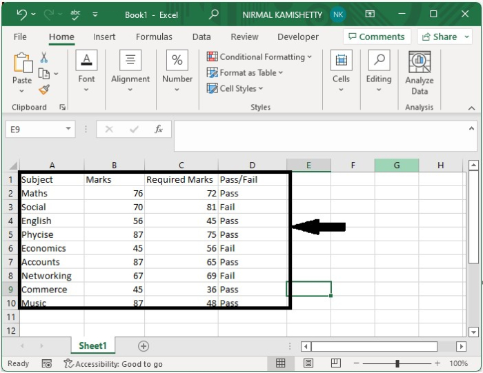讓我們考慮一個 Excel 表格,其中表格中的資料類似於下圖所示的表格。