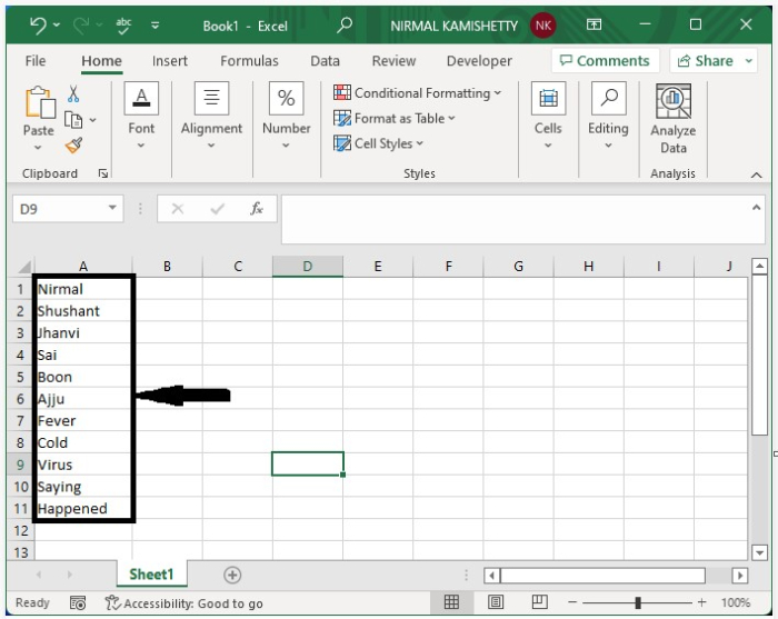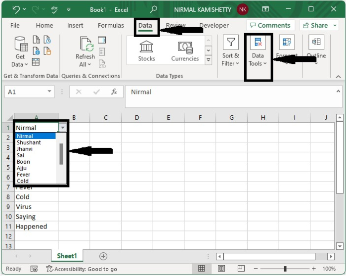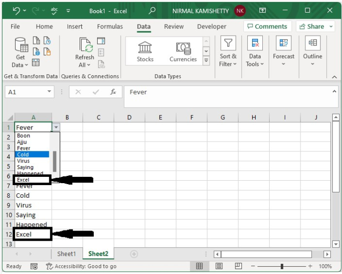 現在,每次我們在 A 列中輸入新資料時,它都會直接新增到下拉列表中,如下面的影像所示。