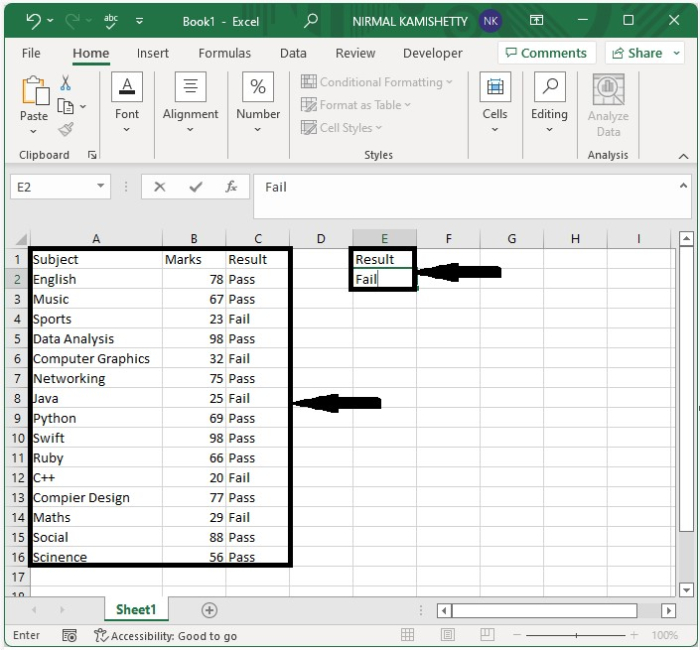 在這裡,我們將為工作表插入 VBA 程式碼,然後點選 Enter。讓我們來看一個簡單的過程,瞭解如何根據單元格值自動篩選 Excel 中的行。我們將使用 VBA 應用程式的幫助來完成我們的過程。我們將根據結果失敗的位置篩選資料。
